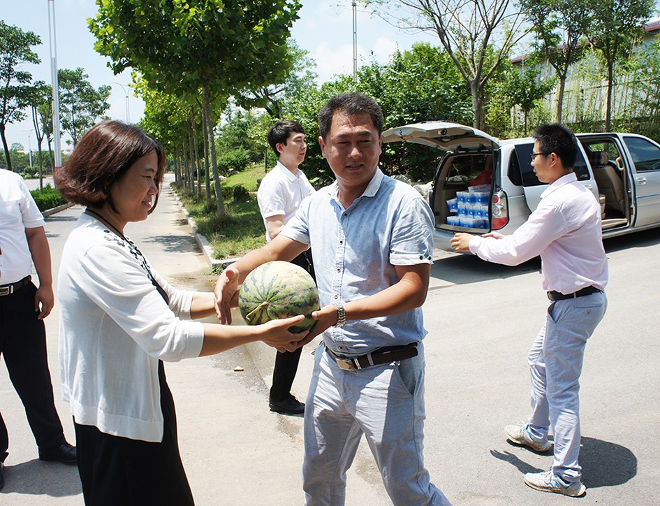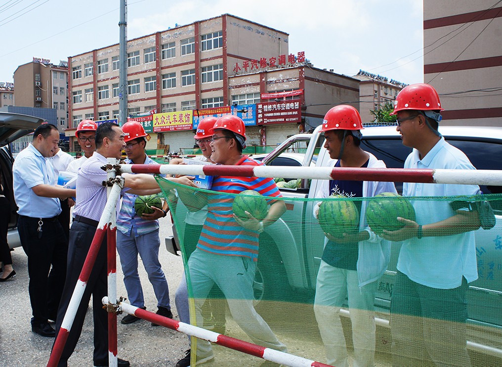 近日我市持續多日的高溫酷暑天氣,給施工生產一線的相關部門帶來了嚴峻的考驗。7月7日,在公司黨總支書記、常務副總經理夏士泉的帶領下,公司工會、行政部、人企部等部門人員組成慰問組,代表公司高層深入一線走訪慰問。為烈日酷暑下奮戰在一線的廣大職工送去了防暑降溫用品,并帶去了公司高層的親切慰問。