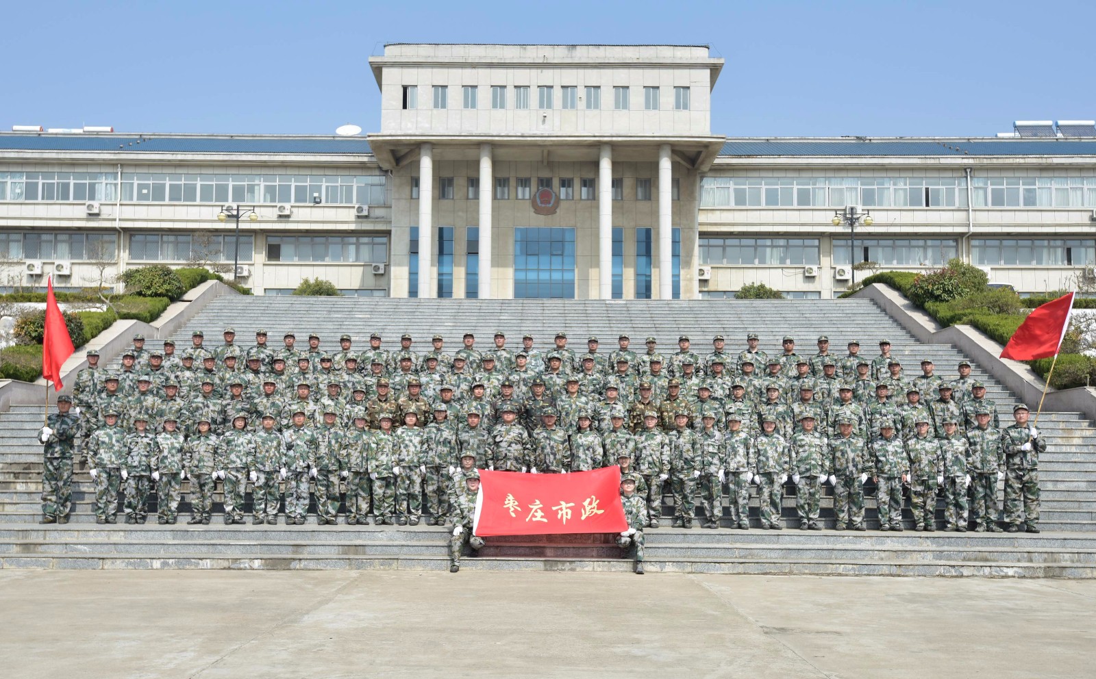 2018年2月22日,棗莊市政建設集團軍事拓展訓練在眾人眾棗莊警校基地正式拉開帷幕。本次拓展訓練的主題是“改變自己、改變態度”。本次拓展訓練分成兩批,各為期7天,參訓人員統一著裝,封閉管理,拓展訓練涵蓋隊列訓練、閱兵式與分列式綜合演練、拓展活動、團隊領導力與執行力課程、員工職業素養提升課程等。