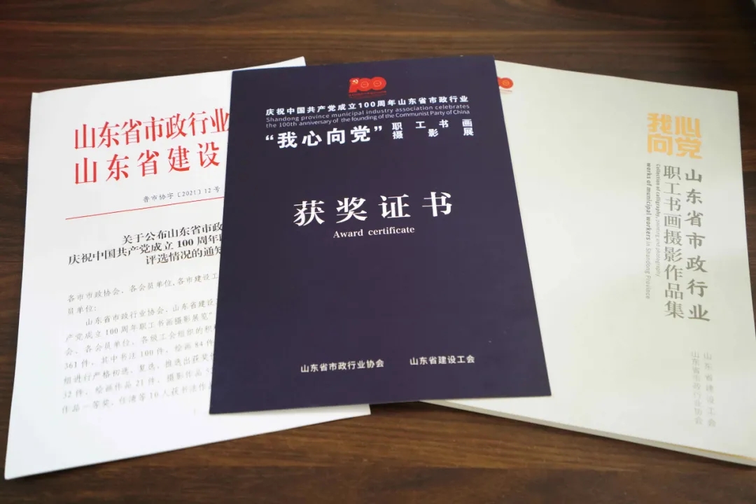 近日,從省市政協(xié)會獲悉,在 《我心向黨——山東省市政行業(yè)慶祝中國共產(chǎn)黨成立100周年職工書畫攝影展 》上,有四名集團(tuán)公司員工報送的作品獲獎。其中,來自市政工程公司的王慧獲得攝影作品一等獎,來自人企部的孫天瑋、水利公司的馬寧和魯衡檢測公司的荊晶獲得攝影作品優(yōu)秀獎。