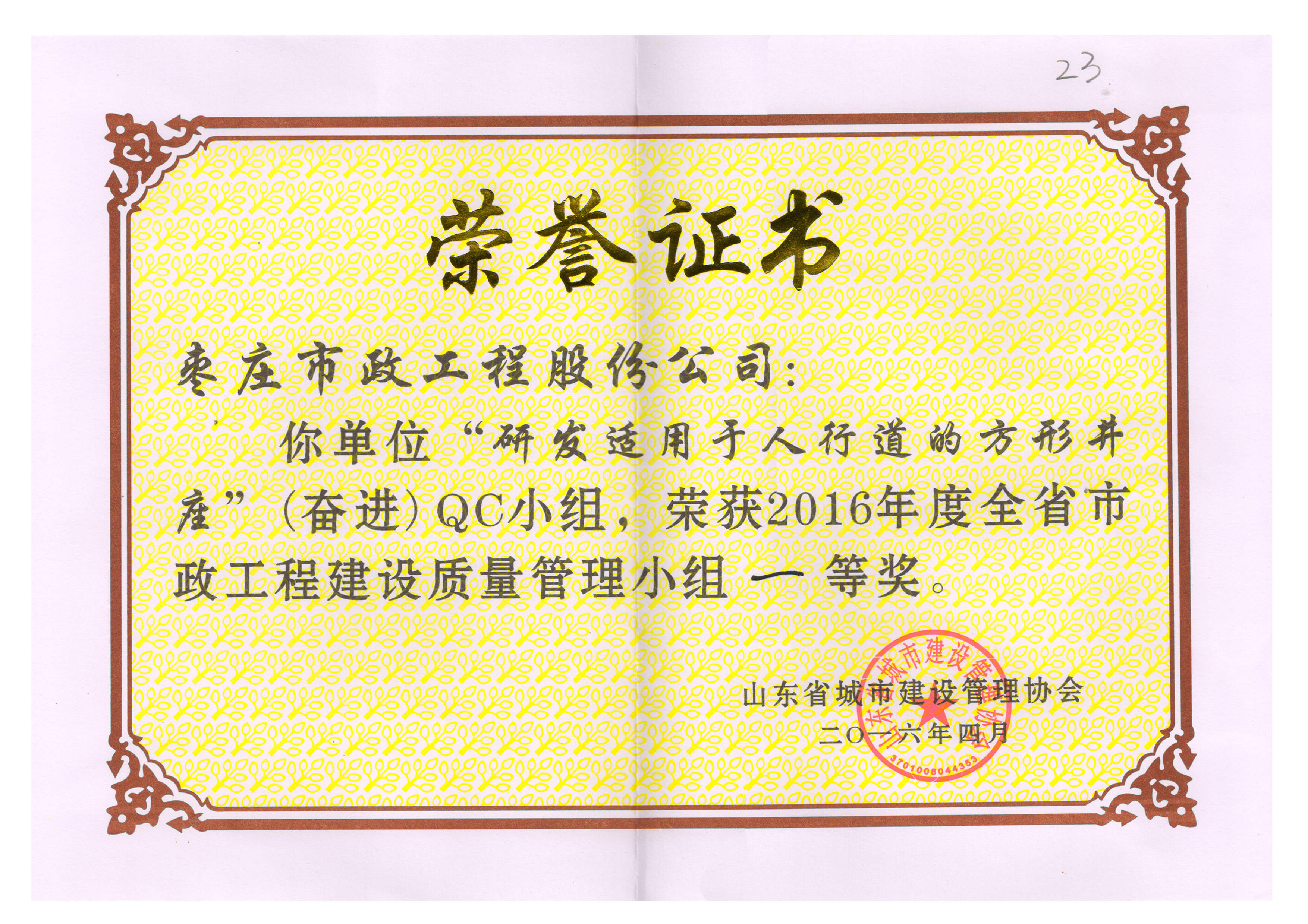 4月22日,由姚洪晉副總經(jīng)理帶隊(duì),路橋一公司奮進(jìn)QC小組、路橋二公司古城QC小組參加了2016年全省QC成果發(fā)布會(huì)。一公司申報(bào)的“研發(fā)適用于人行道的方形井座”和二公司申報(bào)的“提高人行道磚鋪砌合格率”兩項(xiàng)QC成果,分別榮獲2016年度全省市政工程建設(shè)質(zhì)量管理小組一、二等獎(jiǎng)。