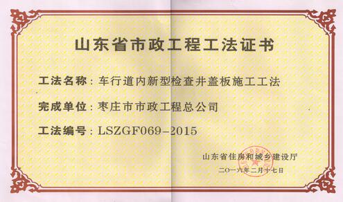 近日從山東省市政協(xié)會獲悉,我公司于2015年11月申報的“車行道內(nèi)新型檢查井蓋板施工工法”被山東省住房和城鄉(xiāng)建設(shè)廳批準為省市政工程工法。